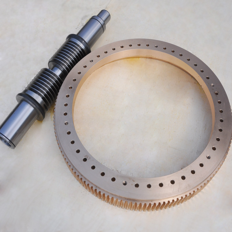 蝸輪系統(tǒng):材質:蝸輪特殊高強力鋁青銅合金;蝸桿:38CrMoAl合金鋼,正常化后滲碳HRC60以上。