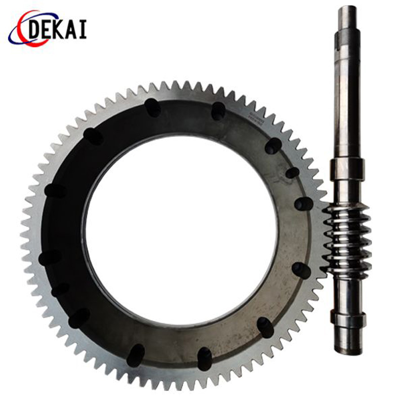 分度精度高,側(cè)隙可調(diào)整至0.01~0.03Mmm;齒面接觸穩(wěn),不會改變中心距。調(diào)整標準,方便可靠。裝配靈活,裝配時,用調(diào)整環(huán)來獲得合適的嚙合側(cè)隙。使用中如果因為磨損導致傳動間隙增大,只要調(diào)整一下蝸桿的軸向位置,可以使蝸桿蝸輪傳動副恢復到原來的精度,不需要更換新的蝸桿,蝸輪,比較實用。蝸桿材質(zhì)采用40Cr,42CrMo、38CrMoAl合金鋼。蝸桿采用錫青銅ZCuSn10Pb1離心澆鑄,具有高強度耐磨性。