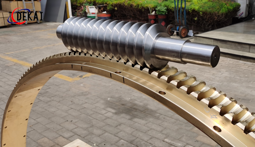 分度精度高,側(cè)隙可調(diào)整至0.01~0.03Mmm;齒面接觸穩(wěn),不會改變中心距。調(diào)整標準,方便可靠。裝配靈活,裝配時,用調(diào)整環(huán)來獲得合適的嚙合側(cè)隙。使用中如果因為磨損導致傳動間隙增大,只要調(diào)整一下蝸桿的軸向位置,可以使蝸桿蝸輪傳動副恢復到原來的精度,不需要更換新的蝸桿,蝸輪,比較實用。蝸桿材質(zhì)采用40Cr,42CrMo、38CrMoAl合金鋼。蝸桿采用錫青銅ZCuSn10Pb1離心澆鑄,具有高強度耐磨性。