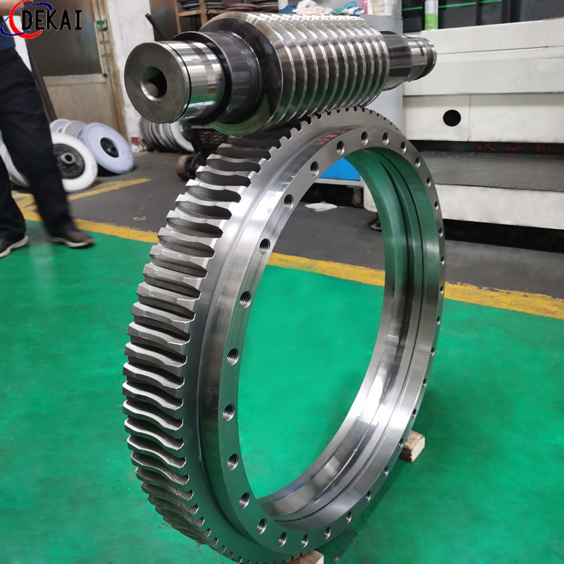 分度精度高,側(cè)隙可調(diào)整至0.01~0.03Mmm;齒面接觸穩(wěn),不會(huì)改變中心距。調(diào)整標(biāo)準(zhǔn),方便可靠。裝配靈活,裝配時(shí),用調(diào)整環(huán)來獲得合適的嚙合側(cè)隙。使用中如果因?yàn)槟p導(dǎo)致傳動(dòng)間隙增大,只要調(diào)整一下蝸桿的軸向位置,可以使蝸桿蝸輪傳動(dòng)副恢復(fù)到原來的精度,不需要更換新的蝸桿,蝸輪,比較實(shí)用。蝸桿材質(zhì)采用40Cr,42CrMo、38CrMoAl合金鋼。蝸桿采用錫青銅ZCuSn10Pb1離心澆鑄,具有高強(qiáng)度耐磨性。