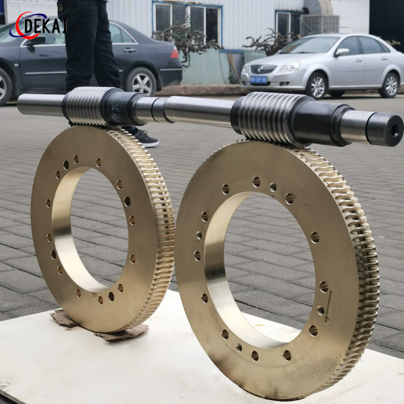 蝸輪系統:材質:蝸輪特殊高強力鋁青銅合金;蝸桿:38CrMoAl合金鋼,正常化后滲碳HRC60以上。