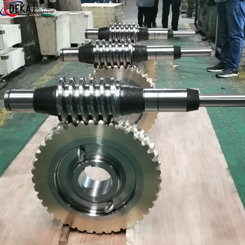 分度精度高,側(cè)隙可調(diào)整至0.01~0.03Mmm;齒面接觸穩(wěn),不會(huì)改變中心距。調(diào)整標(biāo)準(zhǔn),方便可靠。裝配靈活,裝配時(shí),用調(diào)整環(huán)來(lái)獲得合適的嚙合側(cè)隙。使用中如果因?yàn)槟p導(dǎo)致傳動(dòng)間隙增大,只要調(diào)整一下蝸桿的軸向位置,可以使蝸桿蝸輪傳動(dòng)副恢復(fù)到原來(lái)的精度,不需要更換新的蝸桿,蝸輪,比較實(shí)用。蝸桿材質(zhì)采用40Cr,42CrMo、38CrMoAl合金鋼。蝸桿采用錫青銅ZCuSn10Pb1離心澆鑄,具有高強(qiáng)度耐磨性。